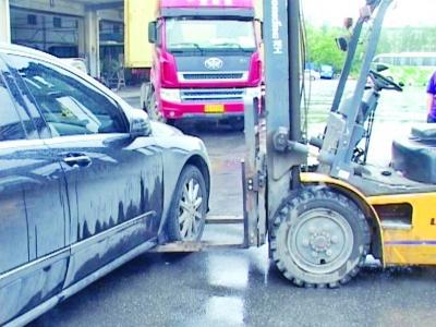 糾紛后女子開車要跑 物流公司員工開南京叉車叉住前輪