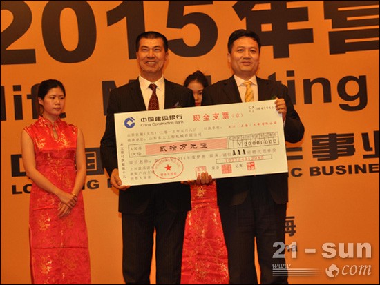全國人大代表、中國龍工控股有限公司董事局主席李新炎先生出席會議,并為2014年叉車銷售的單位和個人頒獎。