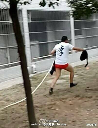 昨日,租住在青山區一冶廠前單身公寓的劉先生,在小區散步時,拍下一段驚人的視頻:一名男子赤身裸體,僅僅穿著一條紅色內褲,慌里慌張出現在二樓陽臺,然后順著一根尼龍繩爬到一樓,奪路而逃。更讓劉先生感到吃驚的是,拍下視頻后他才發現男子竟是從自己房屋內溜出來的。