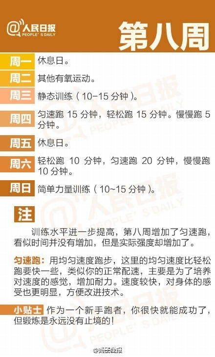 據(jù)南京杭州叉車報(bào)道:每逢佳節(jié)胖三斤!你一個(gè)春節(jié)漲了幾斤?跑步是減肥的選擇運(yùn)動(dòng)之一。可是,你真的會(huì)跑步嗎?總是三天打魚兩天曬網(wǎng),不知道怎么制定科學(xué)的訓(xùn)練計(jì)劃?戳圖↓↓8周跑步計(jì)劃,科學(xué)鍛煉,重在堅(jiān)持,節(jié)后甩肉跑起來(lái)!