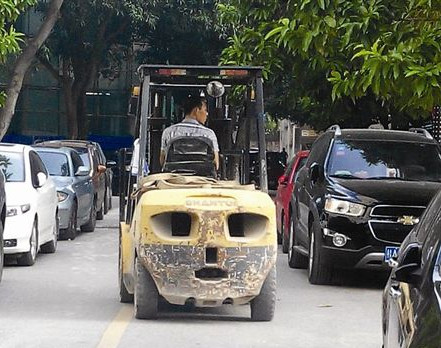 近陪朋友逛街,看見一輛南京龍工電動叉車的后部是一個人臉圖案,很是特別。 以下就是此照片。