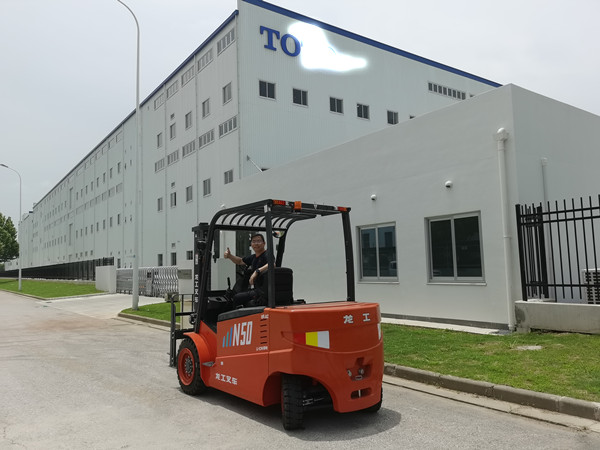 這次新廠開(kāi)工,公司相關(guān)人員經(jīng)過(guò)仔細(xì)選擇,確定選用龍工電動(dòng)叉車,選擇了一臺(tái)五噸
