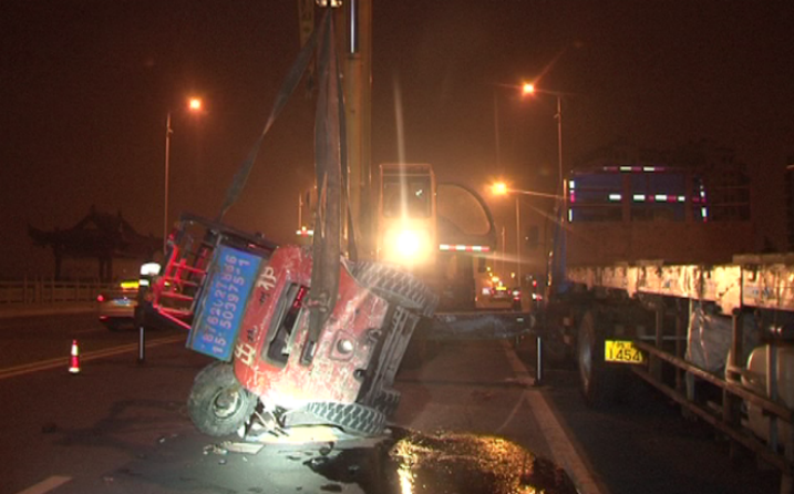 掃一掃!橋上行駛車速快 百萬奔馳撞飛馬鞍山叉車40多米掃一掃!