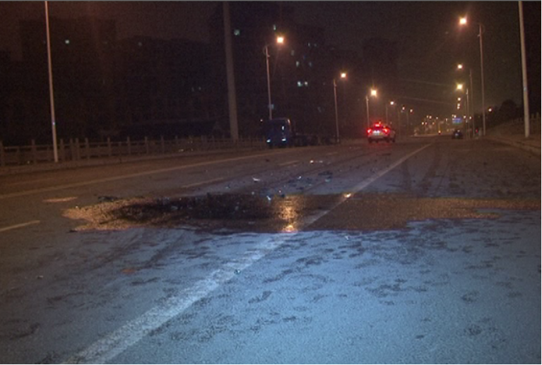 現場奔馳S400轎車已經被清障車拉上了車,奔馳損毀嚴重車頭基本報廢,車內多 只安全氣囊彈出,而馬鞍山叉車底盤和發動機損毀嚴重,由于叉車被轎車撞飛導致路面上散落許多碎片,從馬鞍山叉車側翻的橋北位置到橋上撞擊路段距離足足有40多米。叉車 被撞時司機迅速避讓這才躲過一劫,目前事故原因有待交警部門做進一步調查。