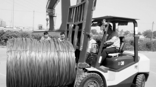 當天的實際操作競賽。比賽共分為“負載過“8”字”和“盤圓碼垛”兩個項目。在“負載過“8”字”比賽場地,叉車司機駕駛叉車圍繞紅色標樁,進行計時時賽;而在“盤圓碼垛”比賽場地,選手們用嫻熟的駕駛技術,將M1庫的盤圓移至M2庫,碼放整齊。經過緊張激烈的比賽,來自沈陽鋼材中心的史光忠獲得。——(滁州叉車