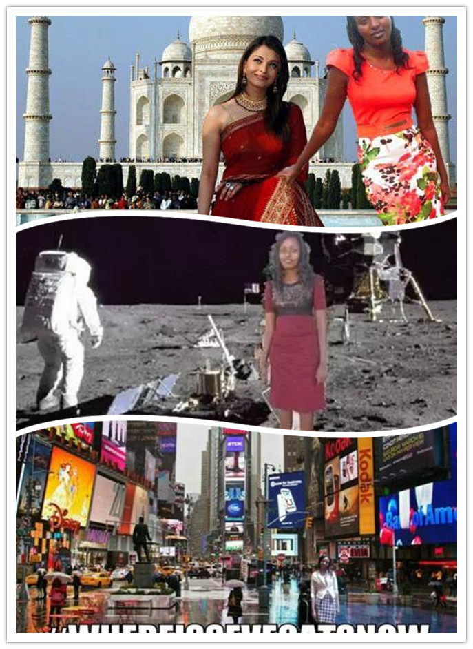 但這事并沒結束,因為蓋特已經火了,網絡上一堆人開始P她的圖,幫她去世界其他地方“旅游”!