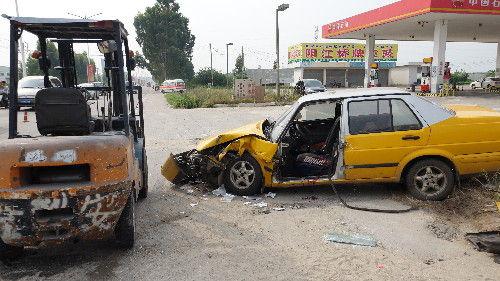 掃一掃!蕪湖叉車與出租車相撞 致三人受傷被困掃一掃!