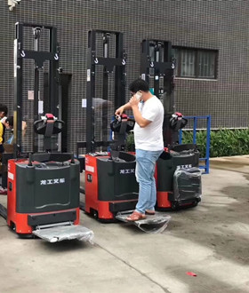 另一種是前移式的揚州電動堆高車,因為門架可以前移,所以轉(zhuǎn)彎半徑小,便于在狹窄的過道中工作,但是價格比較貴,工作量大一點的企業(yè)可以選用;再有一種就是揚州半電動堆高車,那主要因為價格低,一萬元左右就搞定,適合工作量不太大的場合。