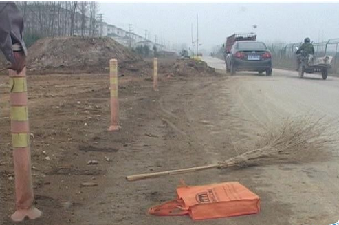 今天上午九時,在馬路上干了8年到的女環衛工歷某在六合至馬集公路黃崗段清掃路面時,遭遇橫禍,被一輛急駛的叉車撞飛,被撞傷女環衛工已經被送往醫院搶救,目擊市民稱,叉車司機好像是個新手,開車時有點緊張。市民指著現場路面上一條掃帚和一只手提袋說,這是被撞女環衛工的勞動工具和隨身物品。目擊者描述說,肇事司機竟然是個拿到叉車駕照后一直沒有開過叉車的新手,所開的叉車也是他剛剛買了不到一星期的新車。