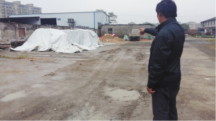 昨天上午,記者來到了“中大”的培訓(xùn)場(chǎng)地,在椒江機(jī)場(chǎng)路邊上,市交管局對(duì)面吳葉村的一塊空地,里面雜草叢生,堆放著一些建材,只有中間一條水泥路。