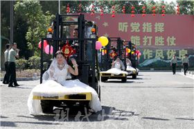 奔馳、寶馬迎親不稀奇,自行車(chē)、公交車(chē),馬車(chē)車(chē)隊(duì)迎親有新意,可你見(jiàn)過(guò)開(kāi)著滁州叉車(chē)迎親的嗎?在人民解放軍某部隊(duì),就舉行了這么一場(chǎng)“霸氣側(cè)漏”的集體婚禮。看滁州叉車(chē)如何霸氣?軍營(yíng)集體婚禮如何演繹“你們城里人真會(huì)玩”!