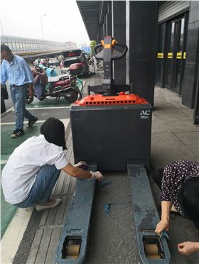 b,終止發動機,拉上手剎,將所有操蘇州電動堆高車作手柄定在空檔位置。