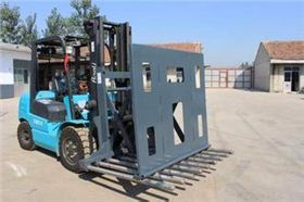 蕪湖叉車屬具推拉器,該推拉器包括直立的支座、直立的前推板和推拉機構。推拉機構位于支座和前推板之間。推拉機構包括后導向軸、右后連接桿、左后連接桿、右后主動臂、左后主動臂、兩只推拉油缸、前導向軸、右前連接桿、左前連接桿、右前主動臂、左前主動臂,還包括由兩只壓緊油缸、壓板和勾板組成的壓緊機構。蕪湖叉車屬具推拉器既實現(xiàn)了節(jié)約堆垛空間,又降低了成本,實現(xiàn)率低維護成本的無托盤搬運與堆垛作業(yè);提高工作效率的同時也減輕操作工人的勞動強度;蕪湖叉車屬具推拉器可快速與叉車整車進行裝配和拆卸;其設計合理,工作平穩(wěn)可靠,檢測維修方便。